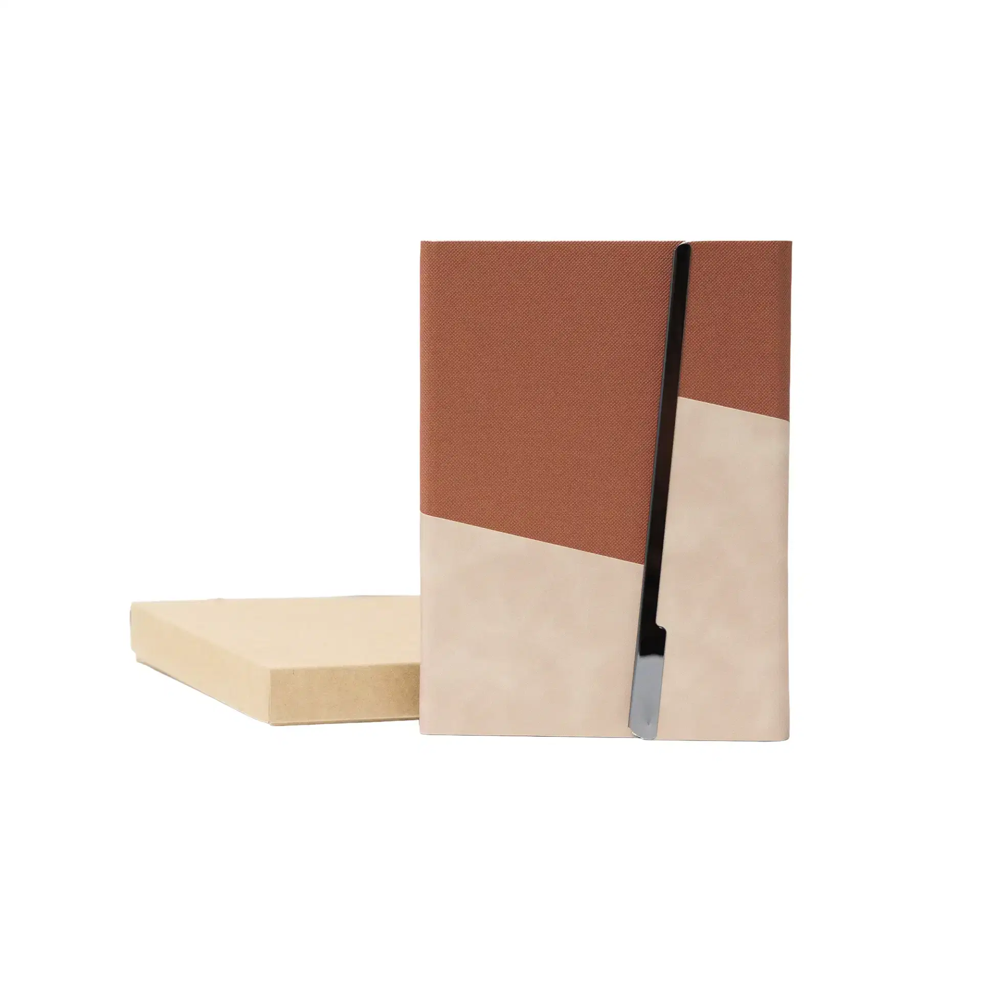 Premium A5 notebook with a two-tone PU cover and elegant metal foldable closure. Features 80 sheets of smooth 80gsm ivory paper, ideal for corporate gifting, branding, and everyday professional use.