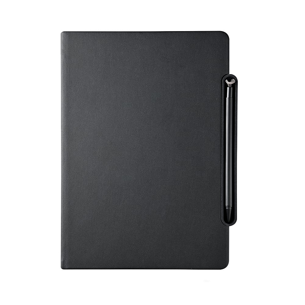 A5 notebook made from recycled PU, featuring 96 sheets of paper with an integrated phone stand and ruler. Compact, functional, and sustainably designed ideal for everyday use and smart gifting.