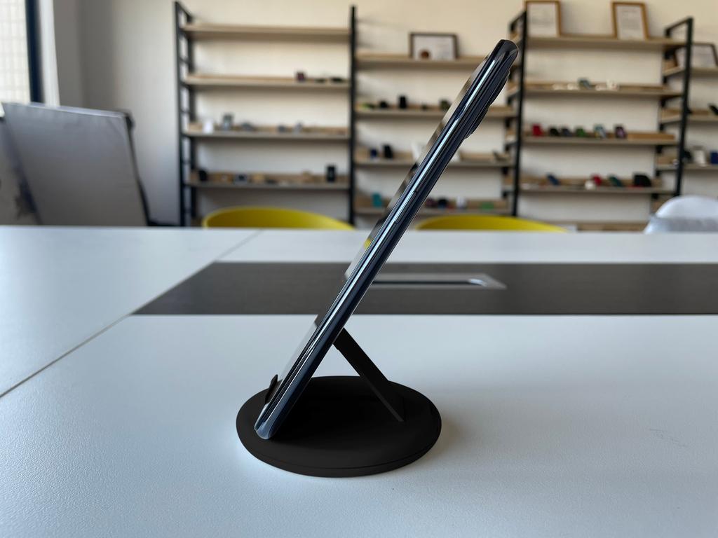 Compact multi-cable travel set with Type-C, Lightning, Micro-USB & USB cables, plus ejector pin and SIM/TF card storage. Made from RCS-certified recycled plastic, it also works as a phone/tablet stand—an ideal eco-friendly giveaway.