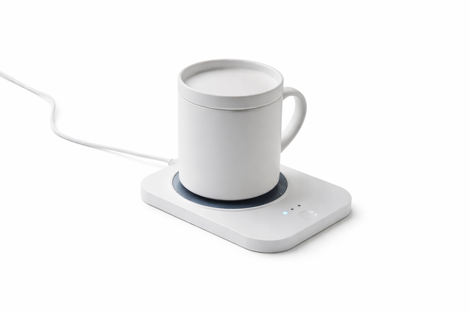 2 in 1 wireless charger 15W and mug warmer device in ABS. With ceramic mug with lid. Capacity: 250 ml. Keep drinks warm to a max of 50ºC. 3 temperature settings with touch screen. USB connection cable. Output: DC 9V/1.67A (15W).