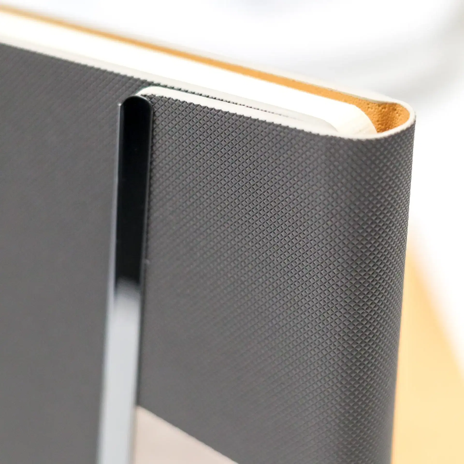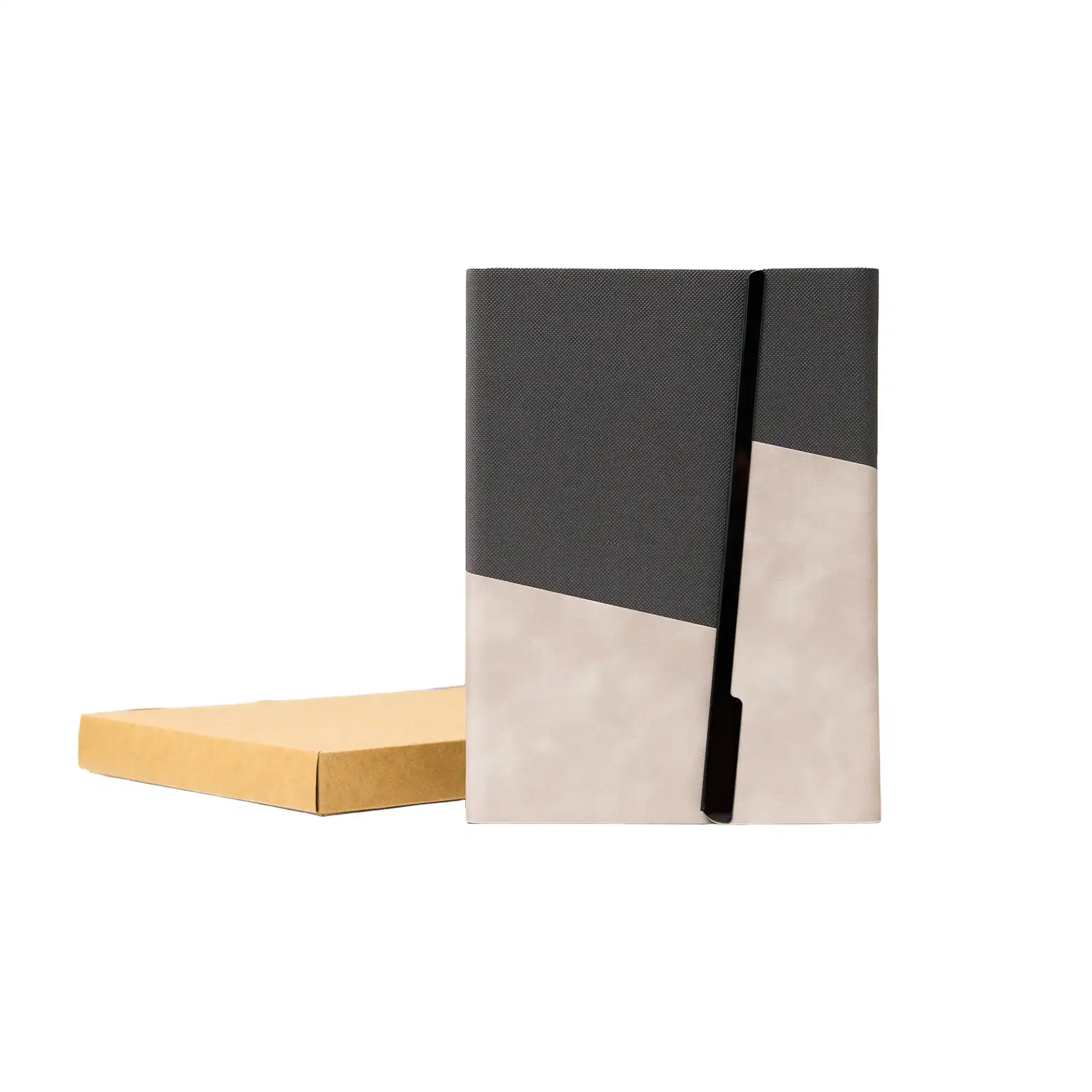 Premium A5 notebook with a two-tone PU cover and elegant metal foldable closure. Features 80 sheets of smooth 80gsm ivory paper, ideal for corporate gifting, branding, and everyday professional use.
