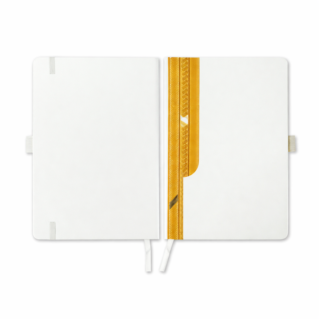 An elegant A5 notebook with a premium hardboard cover and Bisht-inspired imprint. Includes 96 cream ruled pages, elastic closure, ribbon bookmark, and pen loop. Ideal for corporate gifting, cultural events, and premium stationery needs.